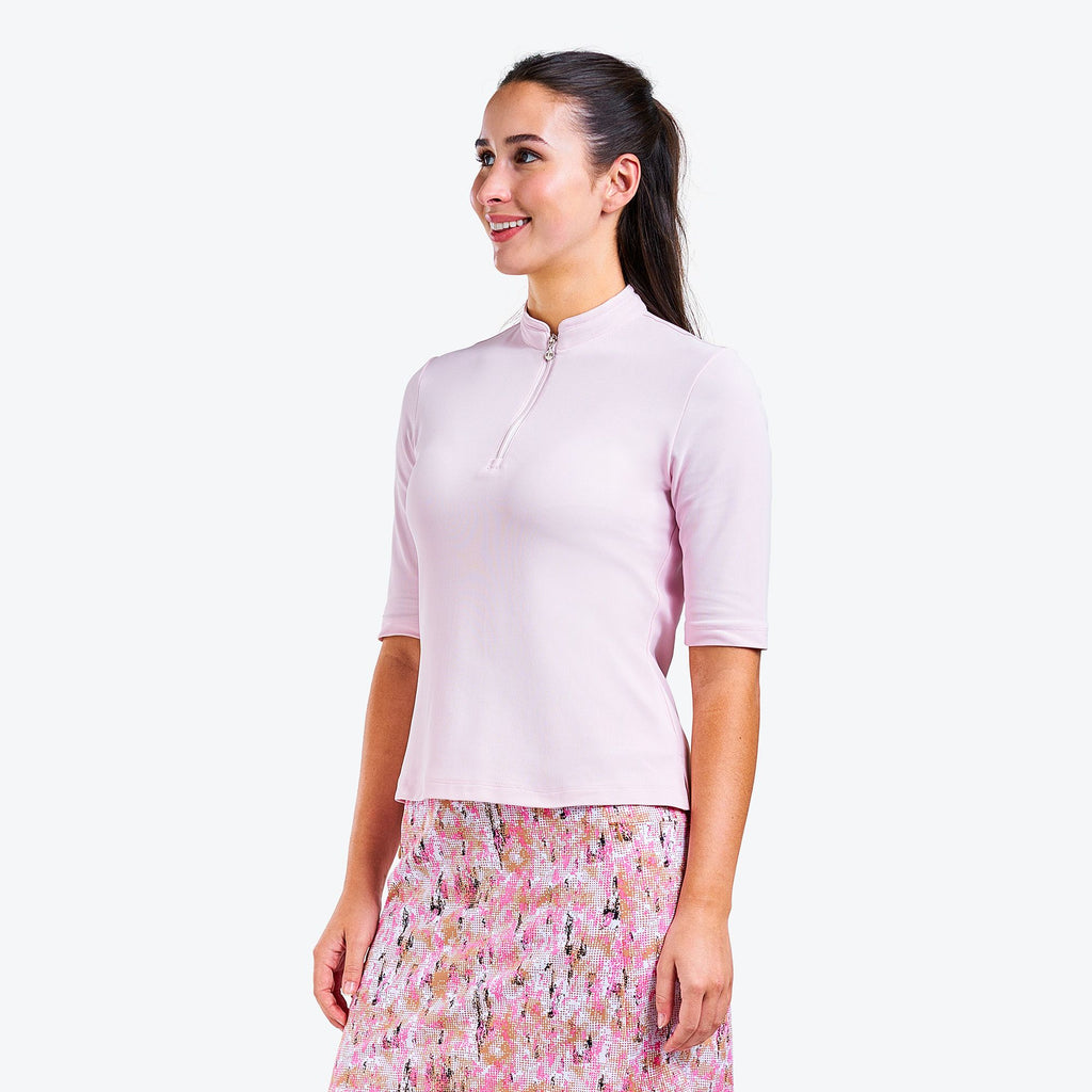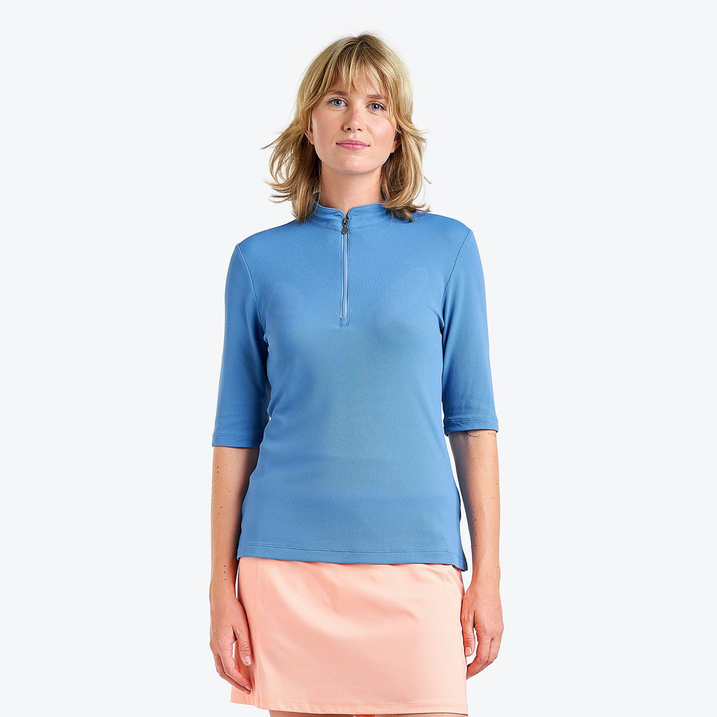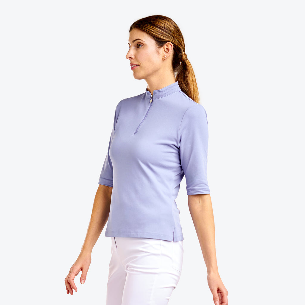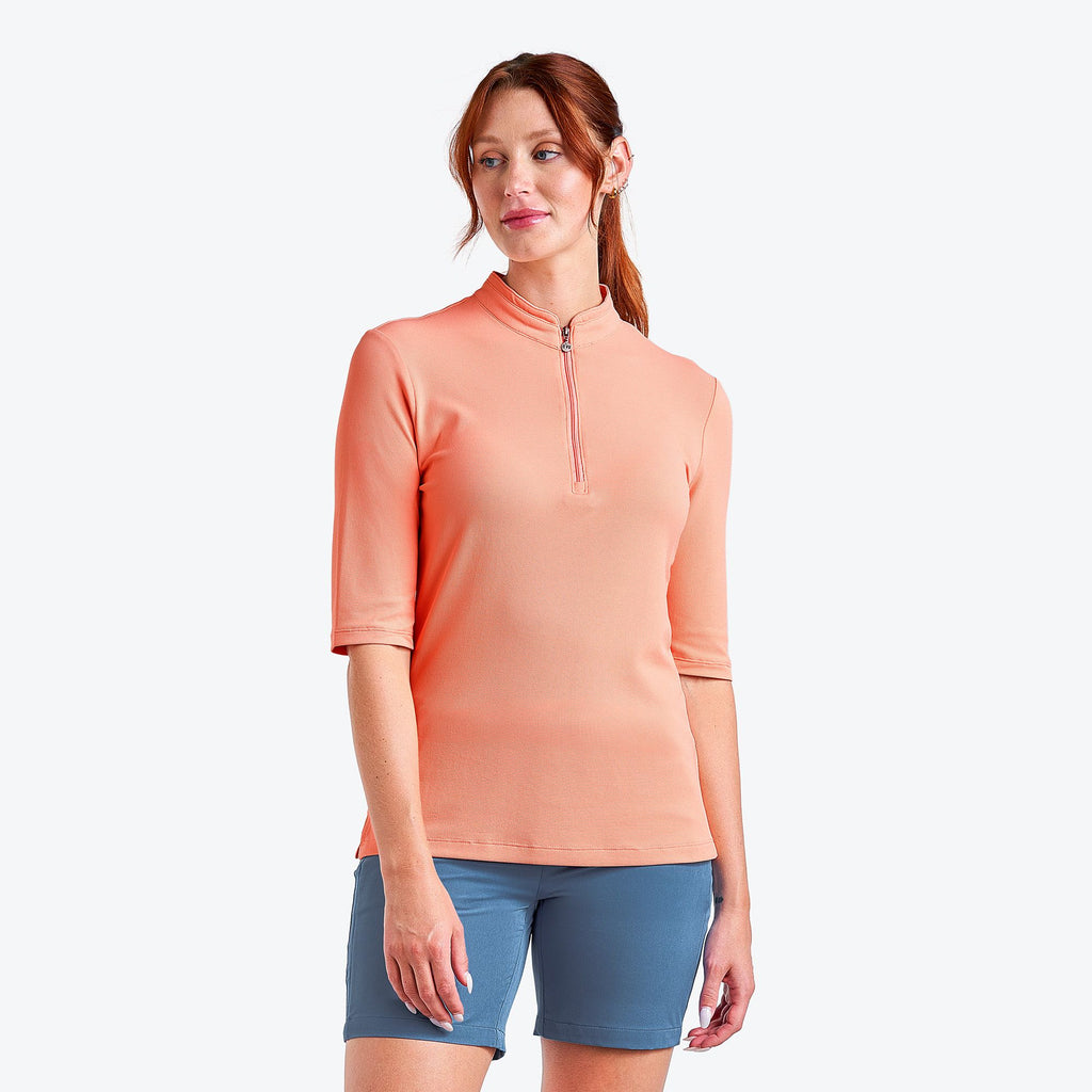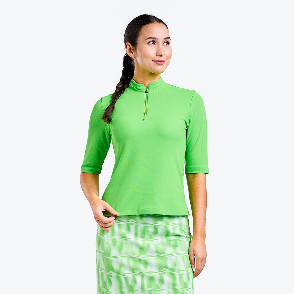 This flattering quarter-zip mock top isn’t just for looks. The Noa II mock from NVO keeps you comfortable with moisture-wicking fabric and UPF 40+ protection. The Noa II mock is made from piqué fabric that keeps you cool and dry all day with its breathable properties. Enjoy the green with your Noa II mock today!
