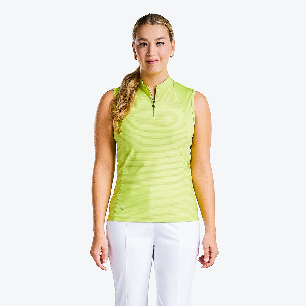 The Bernice from NVO is a sleeveless golf mock top that gives you a classic, stylish look. Easy to put on and take off with its ¼ zip, this golf top is made from a UPF 30+ fabric sun protection to enjoy on the golf course on hot days. Plus, thanks to its moisture-wicking and quick-drying action, air circulates better and keeps you feeling fresh. Odours do not accumulate on your golf top; you can concentrate on your game!