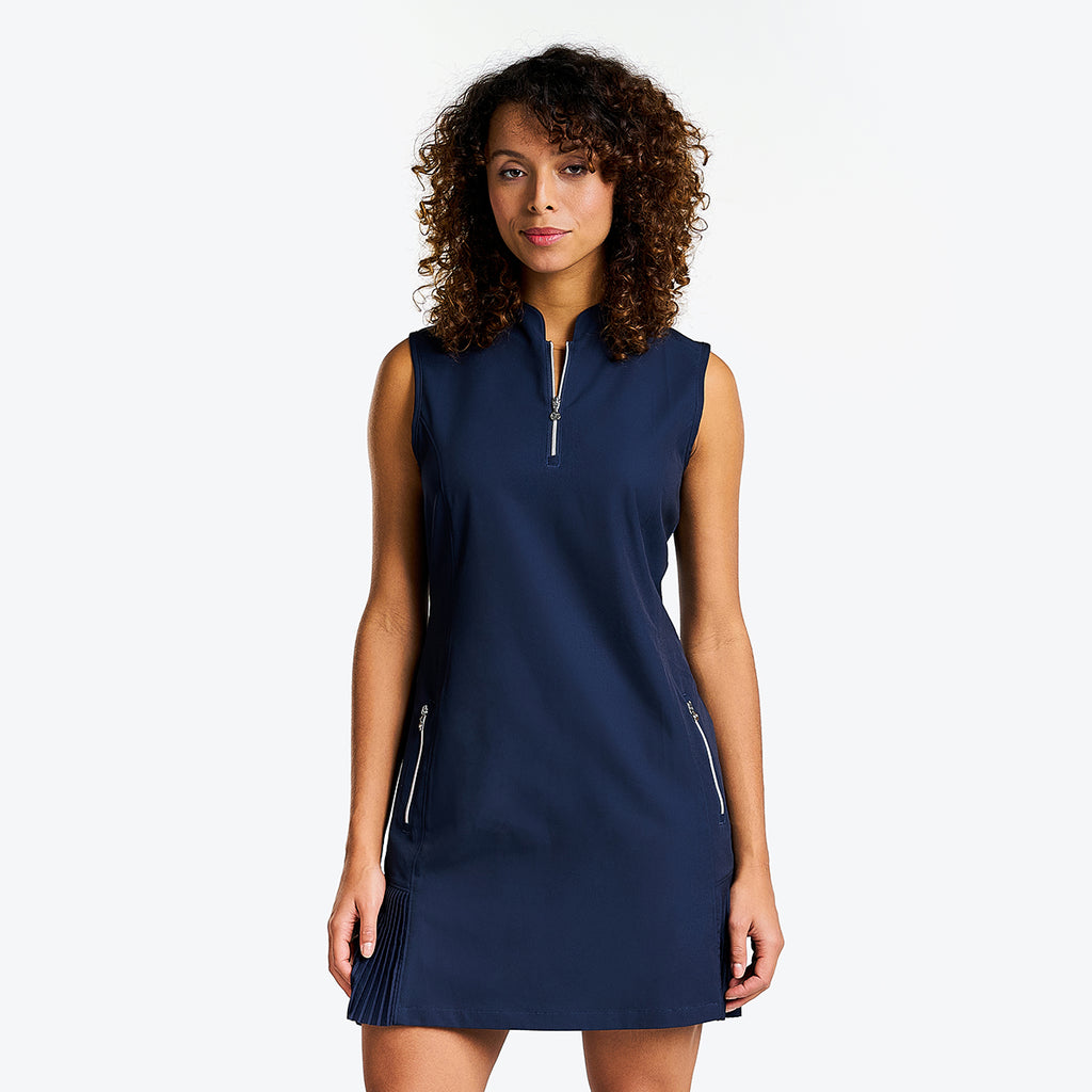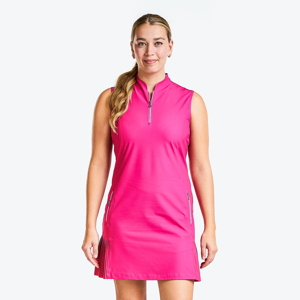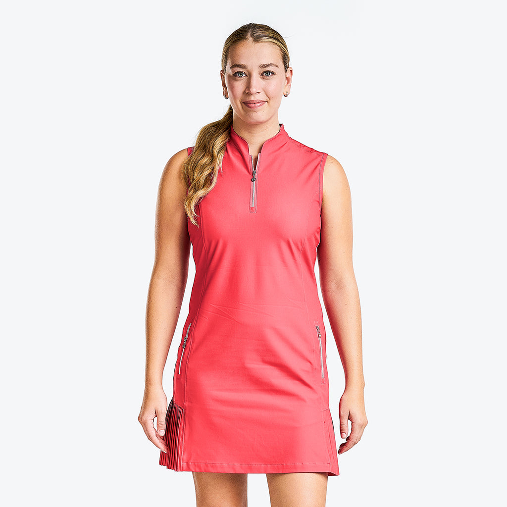 The sleeveless Carrie golf dress from NVO is lovely for those hot summer days on the green. Its UPF 50+ protection, quick-dry, and moisture-wicking fabric keep you comfortable throughout your round of golf. Made from 92% nylon and 8% elastane, the Carrie golf dress is breathable, maintaining airflow. At the same time, the antimicrobial properties inhibit the growth of bacteria and odor-causing microbes, while cooling features help you to feel fresh all day long. Feel sportive and comfy with the Carrie dress!