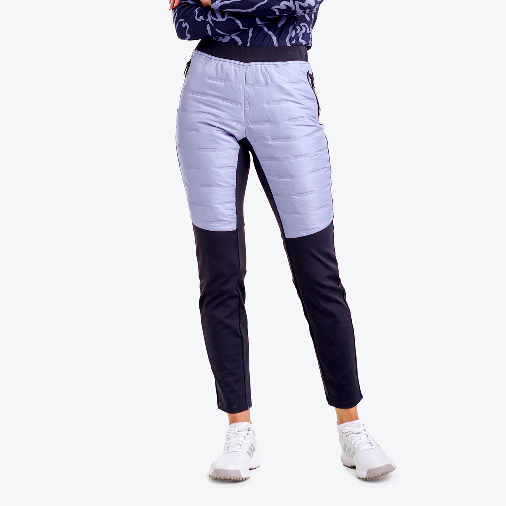 These fitted pull-on pants combine comfort and performance, perfect for your days on the course. Featuring ultrasonic dot and stripe quilting, the Demi pants add a unique style while ensuring maximum freedom of movement. The elastic waistband and zipper pockets provide a secure fit and ultimate practicality. In addition to its modern design, these golf pants for women offers UV protection, quick-dry, and moisture-wicking features to keep you comfortable throughout your game. A perfect choice for discerning golfers!