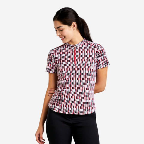 Elevate your golf game while staying cool and protected under the sun with our Lynda golf mock from NVO. This mock offers flexibility with a snug fit to enhance your movements. The UPF 50+ rating provides excellent protection against the sun’s harmful rays, so you can enjoy your game all day long. Plus, the quick-dry and moisture-wicking fabric keeps you dry by effectively moving humidity to the fabric’s surface, where it can evaporate, keeping you fresh and comfortable throughout your round of golf. The Lynda mock ensures you look and feel great!
