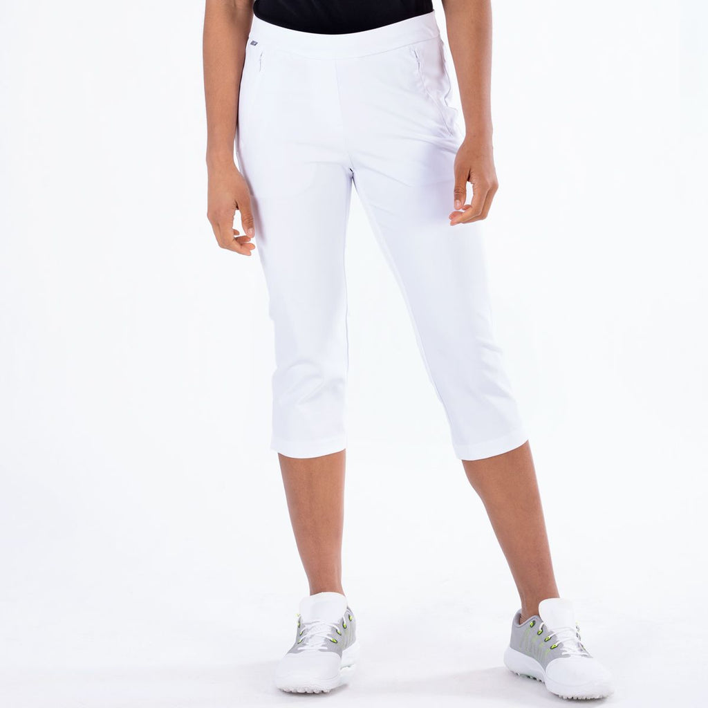 These NVO pull-on Capri feature 4 way stretch fabric and are ideal for indoor or outdoor activities. The inner elastic at the waist guarantees comfort.