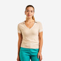 Step onto the fairway with confidence and style with our Nyla light sweater polo. This isn’t just any ordinary sweater; it’s a fusion of fashion-forward design and functionality tailored for the active woman who values both performance and elegance. This light sweater offers a supremely soft feel with just the right amount of stretch. The Nyla sweater polo from NVO comes with built-in sun protection that keeps you safe from harmful UV rays (UPF 50), allowing you to focus on your game. Swing with confidence, play with panache, and enjoy the game with the unparalleled comfort of our exquisite light sweater polo.