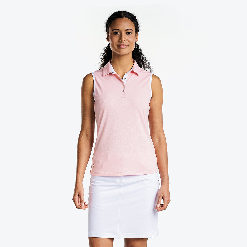 Voici le polo Catrina de NVO — un élégant polo de golf pour femmes qui donne fière allure et vous permet de vous sentir bien sur le parcours?! Notre polo sans manches est fabriqué dans un tissu Jacquard délicat, léger et durable. Parfait pour les journées de golf, il est doté d’une protection FPU 30+ pour vous protéger des rayons nocifs du soleil. Le tissu évacue l’humidité pour un confort optimal et vous profiterez de ses propriétés de séchagne rapide pour rester au frais durant votre activité physique. Pour un confort optimal, nous avons inclus une fermeture à 4 boutons-pression. Préparez-vous à jouer en toute confiance avec le polo Catrina, qui allie style féminin et performance sportive comme jamais auparavant?!