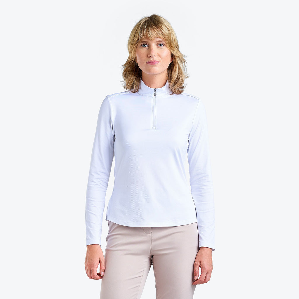 Entrez sur le terrain de golf avec confiance et style en portant le haut de golf à col montant Nadia de NVO.