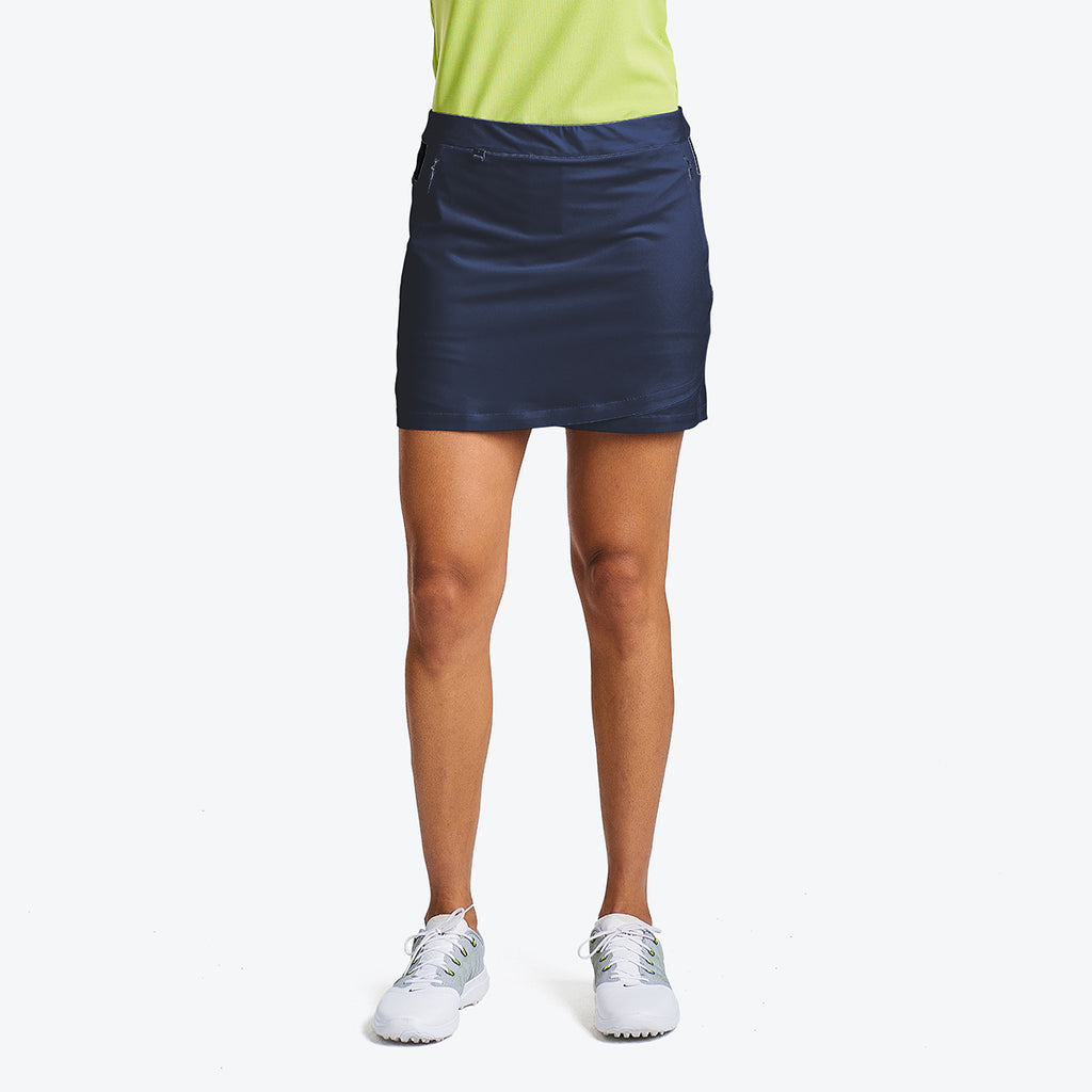 Lighten up your style for summer. The Brooklyn skort allows you to be comfortably on top of your game. Pull-up waist and light fabric that moves with you, protects from the sun and wicks away moisture. Convenient zipped-up pockets and shorts to move with confidence.