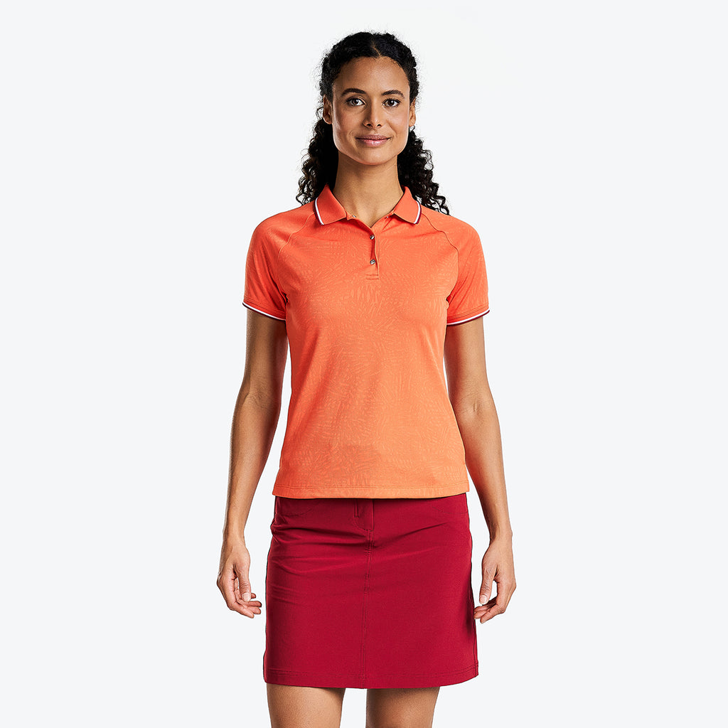 The Carli polo from NVO is made of delicate Jacquard for extra durability and strength. Your golf polo lasts longer to ensure you can wear it for a long long time! The fabric is sun protective to reduce the risk of exposure to the harmful rays of the sun. Moreover, the Carli polo is quick-drying and moisture-wicking to keep you fresh and dry.