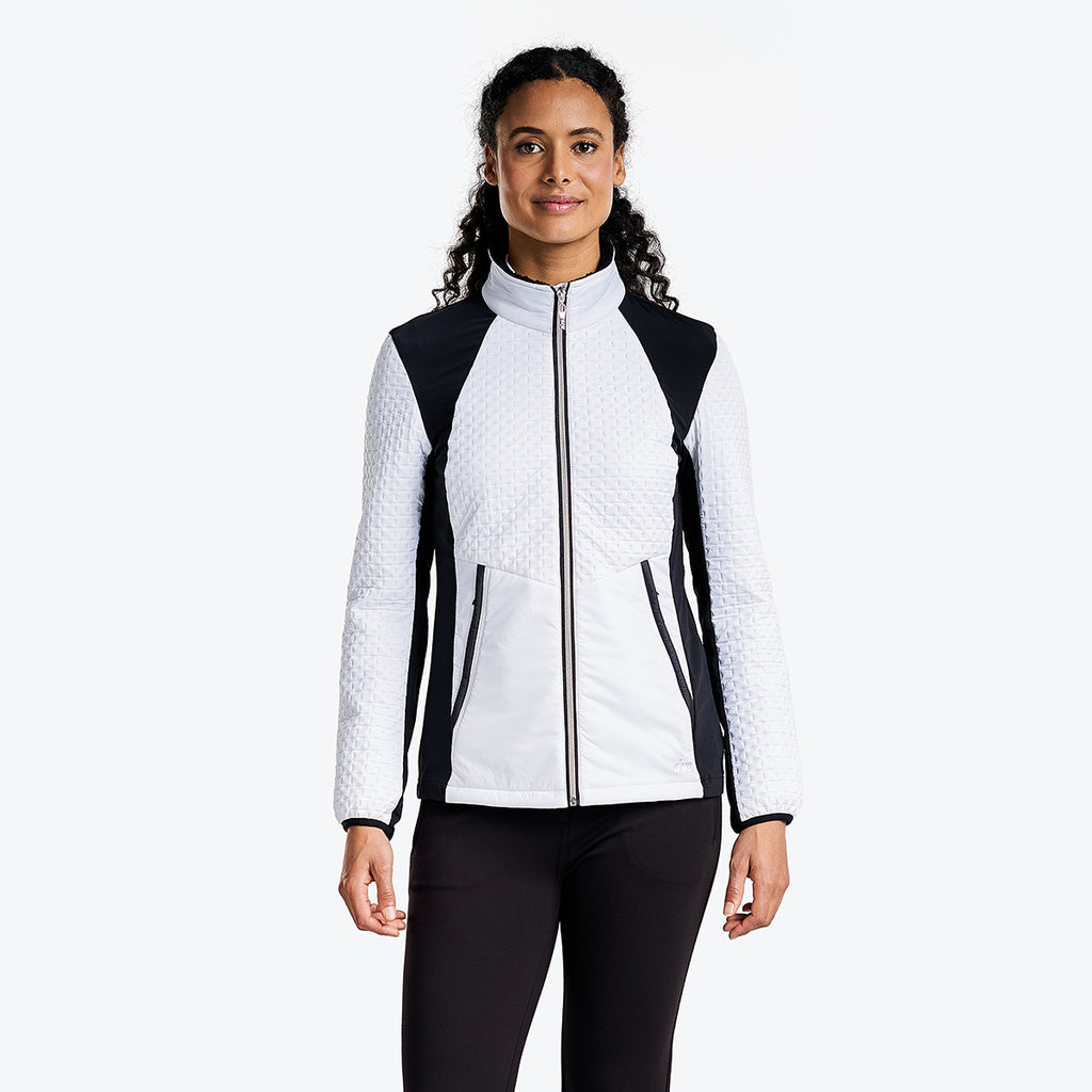 This Mikaela jacket from NVO is your perfect wardrobe companion on and off the golf course. Featuring UPF 40+, this golf jacket ensures you are safe from the suns harmful rays. It is quick-dry and lightweight to keep you comfortable in any weather. You can wear it on any occasion, and it keeps you fresh as humidity evaporates quickly. Embossed 100% polyester provides an added layer of better coverage from outside elements. The front YKK zipper closure adds an athletic touch. Plus, two front pockets with zippers are great to store all your essentials safely.