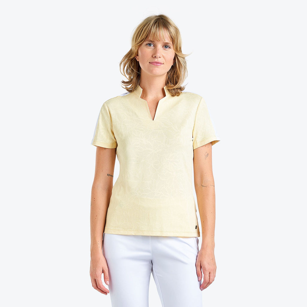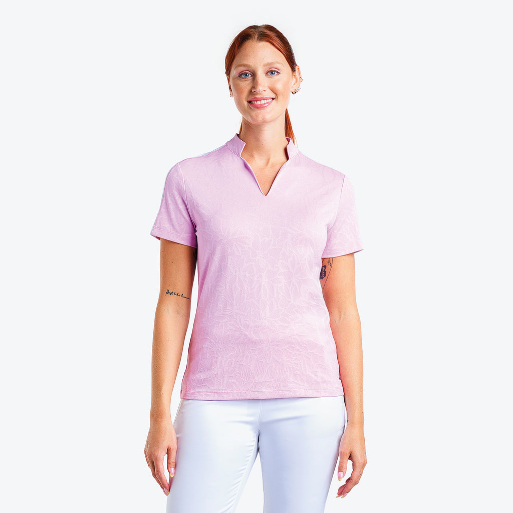 The Saskia women's golf polo from NVO is lightweight and breathable, providing comfort both on and off the golf course! The floral pattern accentuates your femininity, and the lines of the Saskia shape your silhouette.